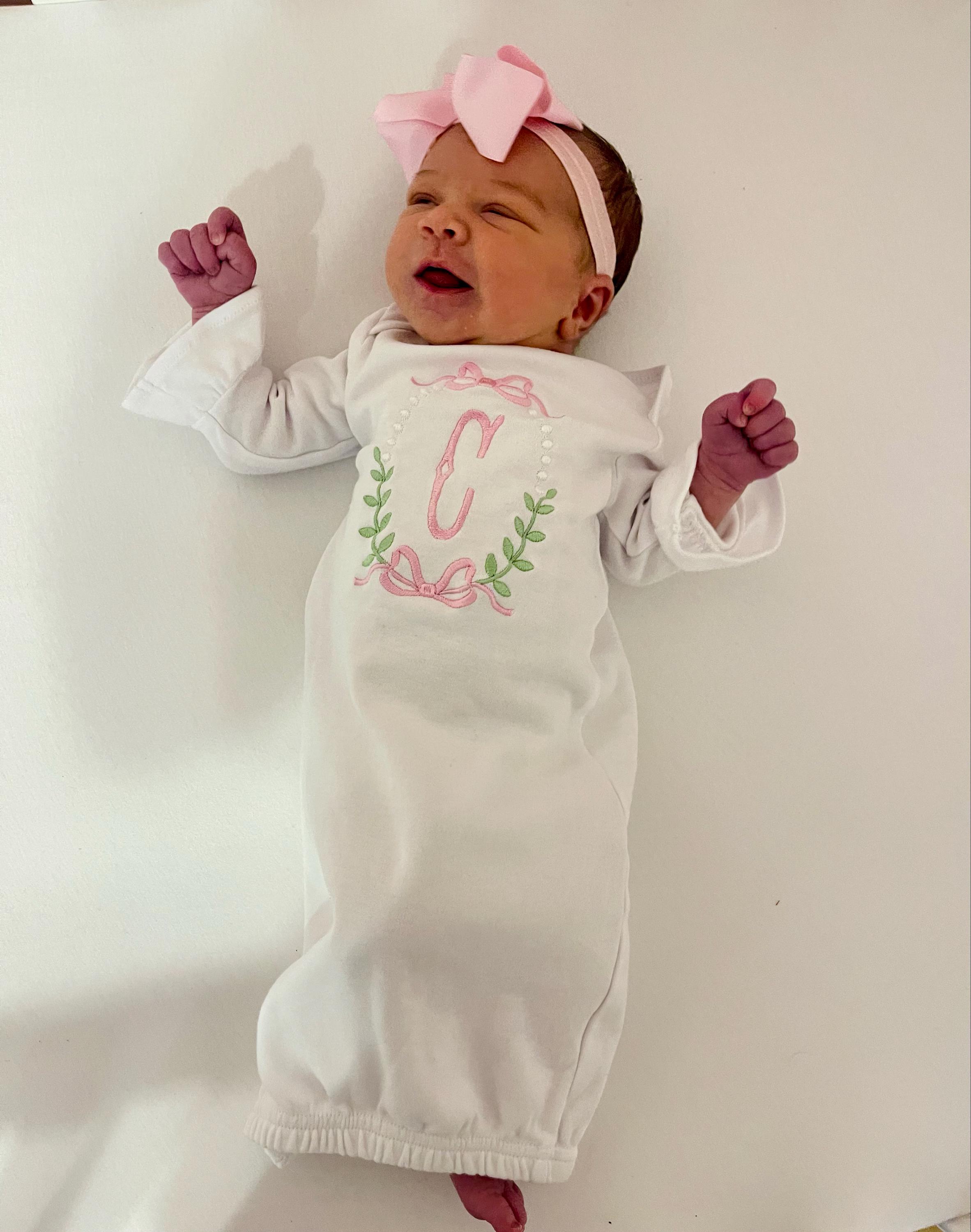 If you would like to change the color of the bow and the monogram, please list the color from the thread chart given beside the initial you are wanting embroidered.