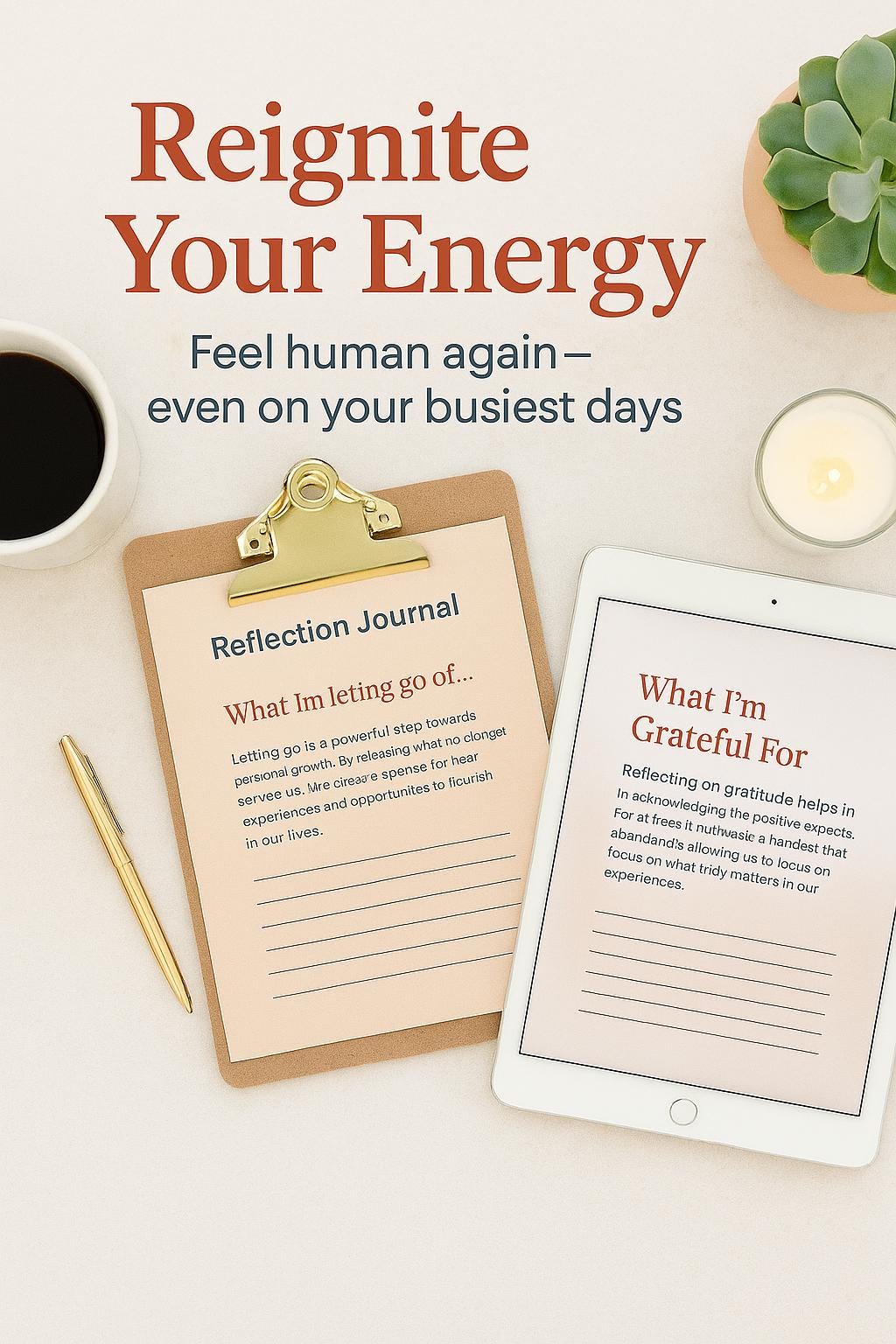 If you’ve been running on empty — juggling kids, work, and everything in between — the Busy Mom Burnout Rescue Toolkit and Reflection & Reignite Journal are your reset duo.